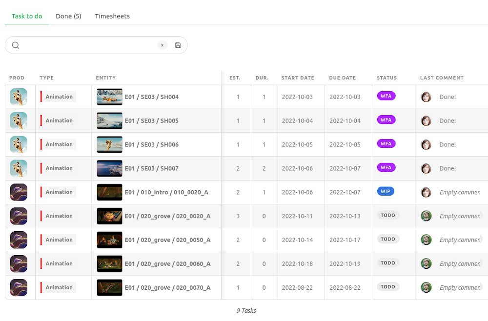 Streamlined and intuitive software is quicker to use and easier to get started with. With Kitsu, you can start your projects without the need for a consultant or intensive training.